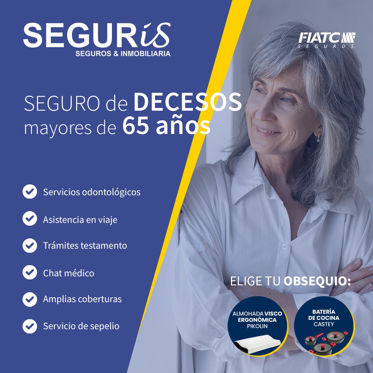 También tenemos solución para personas mayores de 65 años que no tienen contratado un seguro de decesos. Ponte en contacto con nosotros y buscaremos la mejor solución para tus necesidades. Seguris: Cuidamos de Ti.